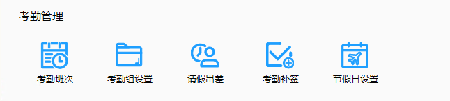 - 考勤班次:图标类似日历中有时间区间标注。点击后能定义不同班次的考勤时间规则,比如设置行政人员 “早 8 晚 5 午休 1 小时” 班次、工厂工人 “三班倒” 班次等,明确每个班次的上下班打卡时间、休息时段界定,让考勤计时有清晰标准。