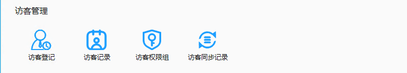 - 访客登记:图标为带有 “访客” 字样的人物形象。管理员可登记访客信息,填写访客姓名、身份证号(可选)、访问对象、访问时间段、访问事由等信息;系统会留存这些申请,提前规划访客接待与门禁放行安排,提升访客来访效率与安全性。
