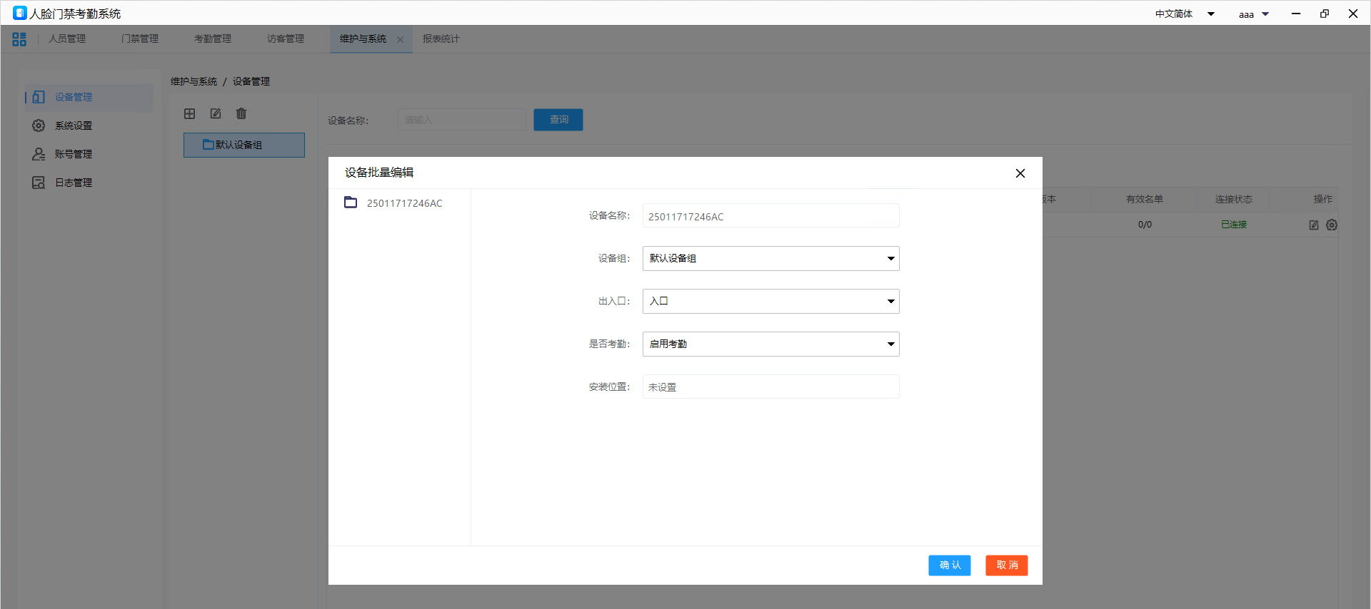 - 批量编辑时,若修改“设备组”或“出入口类型”,需确保目标分组或类型已存在且符合业务规则。