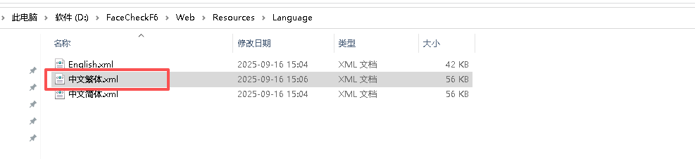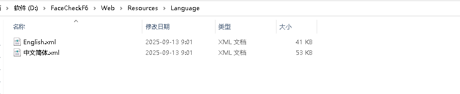 1、找到安装目录对应文件夹的语言包文件,如:D:\FaceCheckF6\Web\Resources\Language