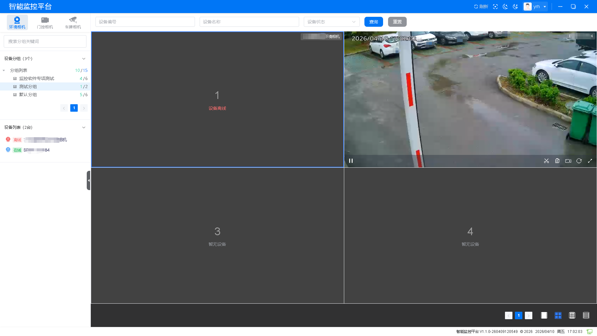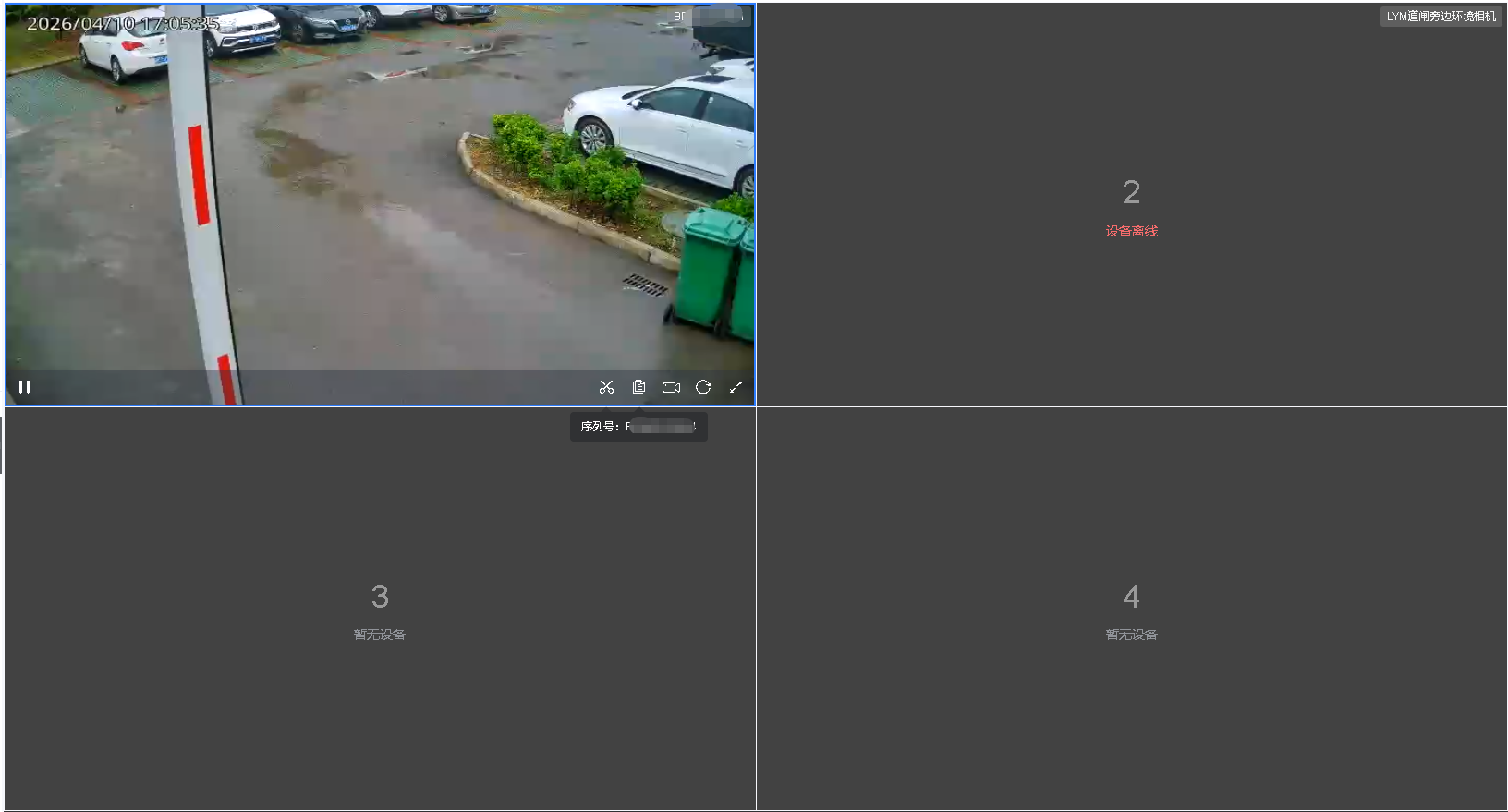 - 每个窗口显示对应设备视频画面,无设备时提示「暂无设备」